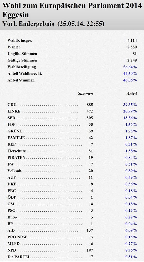 Vorläufiges Ergebnis der EU-Wahl in der Stadt Eggesin
